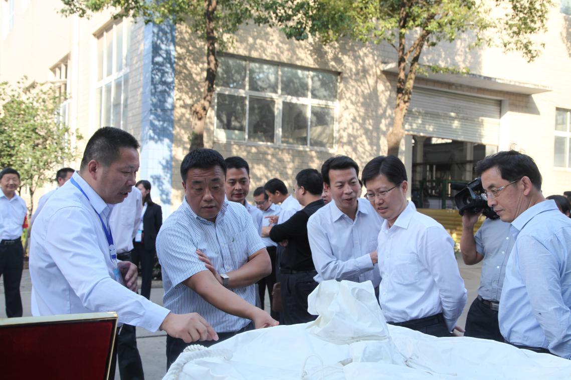 2015年10月12日下午秋高氣爽,伴隨兩輛大巴車緩緩駛?cè)牍敬箝T(mén),國(guó)務(wù)院辦公廳國(guó)務(wù)院應(yīng)急辦巡視員兼副主任劉建波、副巡視員陳勝、應(yīng)急辦處長(zhǎng)呂紅頻,工業(yè)和信息化部運(yùn)行監(jiān)測(cè)協(xié)調(diào)局副巡視員許國(guó)祿、調(diào)研員曲國(guó)燊,發(fā)展改革委經(jīng)濟(jì)運(yùn)行調(diào)節(jié)局處長(zhǎng)王萬(wàn)平、科技部社會(huì)科技發(fā)展司調(diào)研員鄭忠、湖北省政府副秘書(shū)長(zhǎng)兼辦公廳黨組副書(shū)記王順華、省經(jīng)信委副主任吳方軍、省政府應(yīng)急辦副主任宋煒、省經(jīng)信委經(jīng)濟(jì)運(yùn)行處副處長(zhǎng)劉良博、隨州市市長(zhǎng)郄英才、隨州市副市長(zhǎng)王志勇、隨州市經(jīng)信委主任布厚偉等一行二十余人到訪湖北金龍集團(tuán)公司,曾都區(qū)區(qū)委書(shū)記、區(qū)長(zhǎng)和湖北金龍集團(tuán)公司董事長(zhǎng)、黨委書(shū)記饒金才等相關(guān)領(lǐng)導(dǎo)全程陪同。
